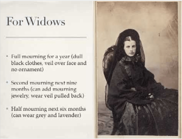 In the early days of grieving, whenever I was forced to go into public, I wanted to drape myself from head to toe in black cloth. I wanted to hide myself with mourning attire so that no one would bother me. In Victorian times, women would wear black so that the public would know that she was in mourning, and shouldn’t be bothered or approached. The veil in particular was meant to hide her sadness because it was a private matter. I would love for this to still be tradition because it would suit my desire to hide away, and let the general public know that I want to be respected, and left alone. I still wear black everyday, but most people assume that it’s just a fashion choice. But, perhaps some understand that I’m in mourning, and I wish to be left alone.